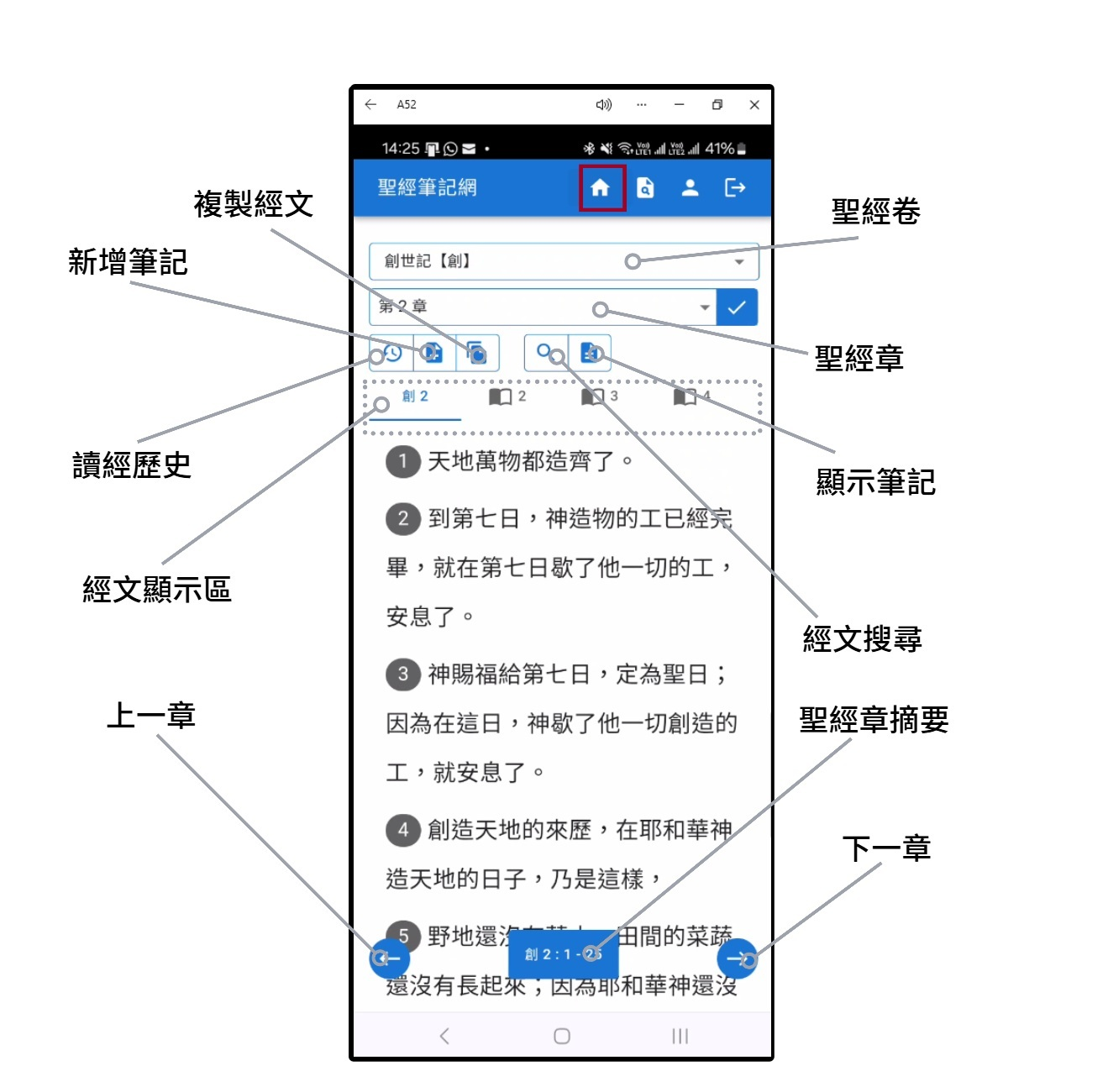 在經文顯示區顯示經文